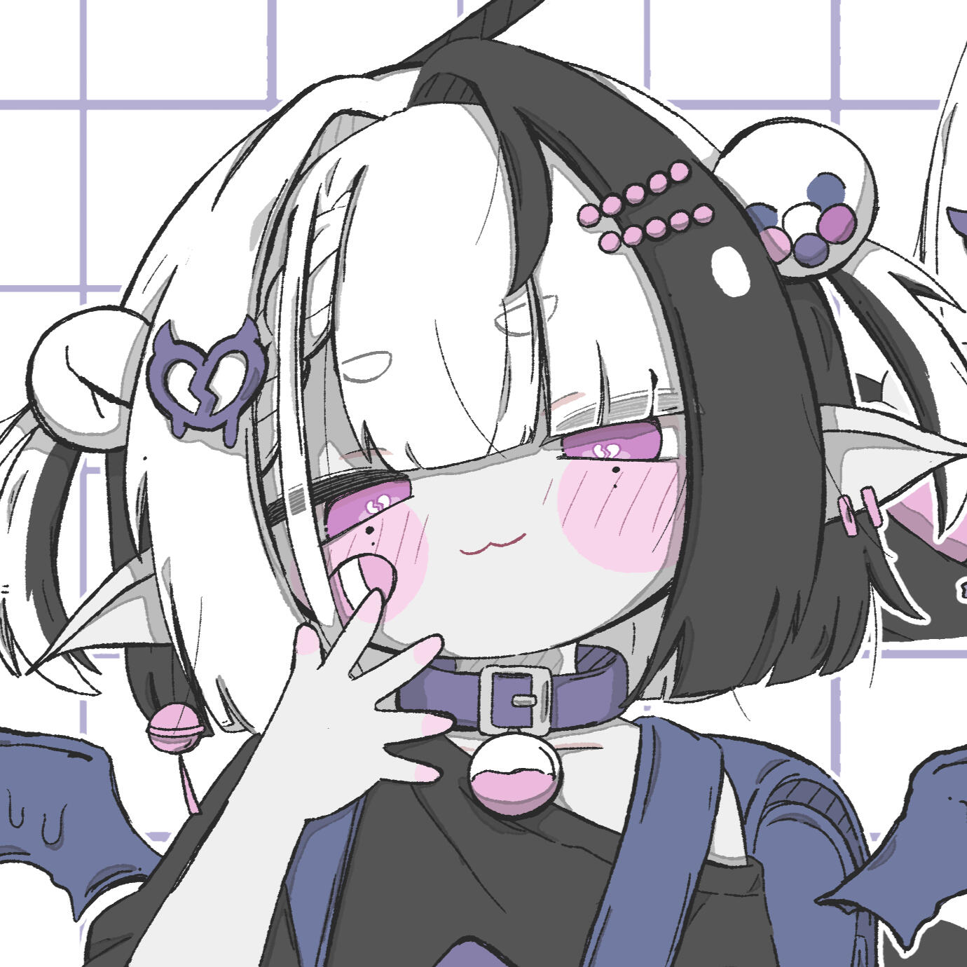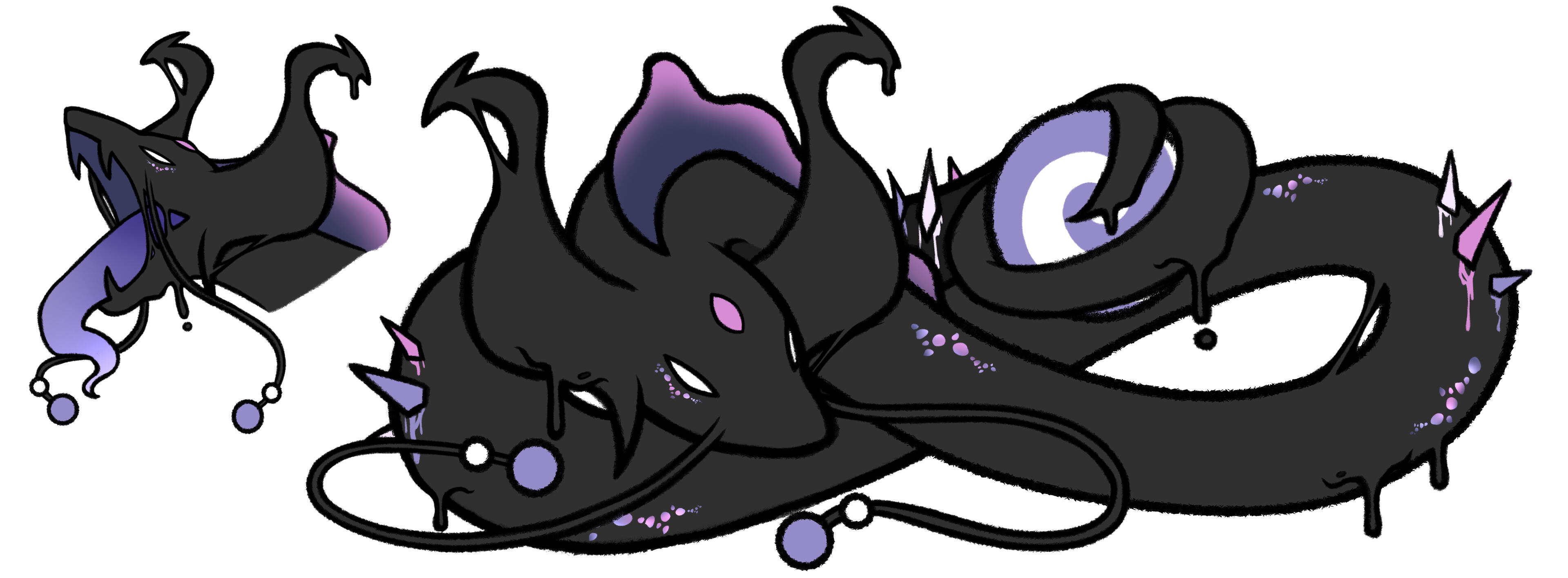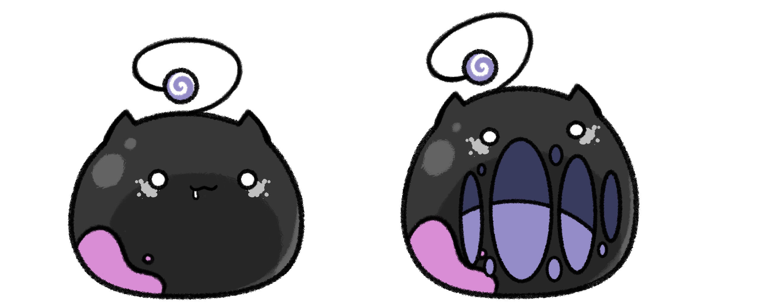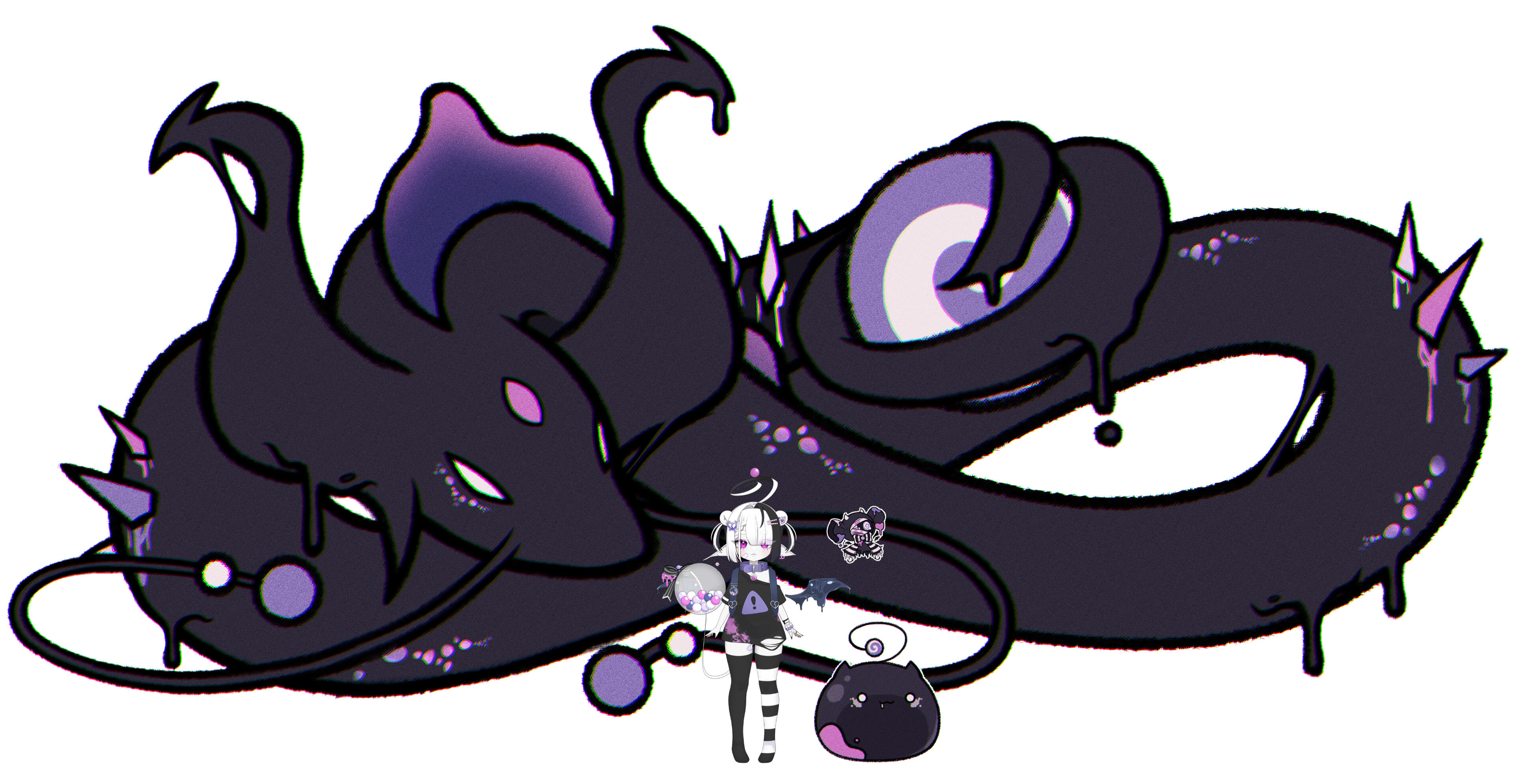 | ♡ height・140cm (with ahoge) , small and cute appearance !! | ♡ the skin is a light grey , almost snow white .. facial moles are very important !! | ♡ central themes are candy , slime / goo , teeth, dizzy swirls, and warning sign |